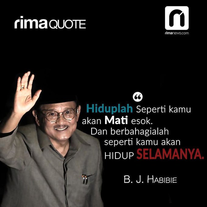 Dan jenazah pak habibie akan dimakamkan di taman makam pahlawan kalibata di. Hiduplah seperti anda akan mati besok dan berbahagialah seperti anda akan hidup selamanya. Indonesia baru saja kehilangan putra terbaik bangsa yaitu bj habibie yang menghembuskan nafas terakhir di usia yang ke 83 pada tanggal 11. Kumpulan quotes bj habibie yang inspiratif tentang filosofi hidup, kesuksesan, cinta, hingga agama. Berikut ini akan dibagikan kumpulan quotes bj habibie tentang pemuda.
